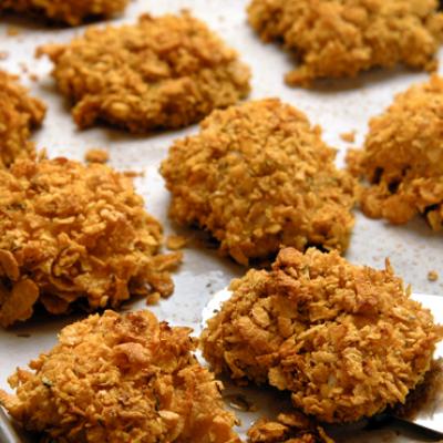 Shape mixture into 1½ inch balls; roll in crushed cornflakes and place on a baking sheet coated with cooking spray.