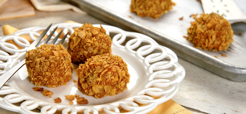 Bake at 350 degrees for 15-20 minutes or until cornflakes are golden and sweet potato balls are heated through. Makes 12 balls.