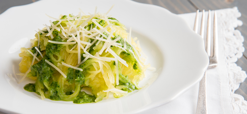 ¡Prueba esta deliciosa alternativa a la pasta y sorprende a tu familia! Con la calabaza espagueti puedes hacer unos fideos finos y ligeros. Acompáñalos con una salsa cremosa de espinacas asadas para hacer este platillo aún más apetecible. Casi sin darte cuenta, tendrás un platillo lleno de verduras y sabor.