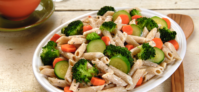 “Primavera” means spring, but this pasta dish is delicious any time of year! Lightly steamed veggies make a great pairing with a creamy sauce and penne noodles. Sprinkle on extra parmesan for a tasty topping.