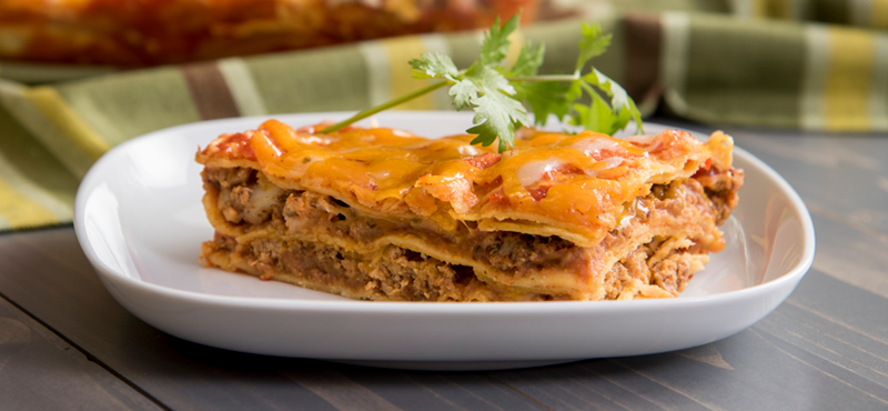 Este guiso en cazuela está colmado de sabores Tex-Mex y se prepara tan rápido que lo puedes hacer entre semana. Las capas de frijoles refritos, tortillas de maíz y carne molida de pavo hacen un platillo picante y sustancioso. Además, puedes agregarle encima tus ingredientes favoritos, como crema ácida, cilantro o chiles jalapeños entre otros.