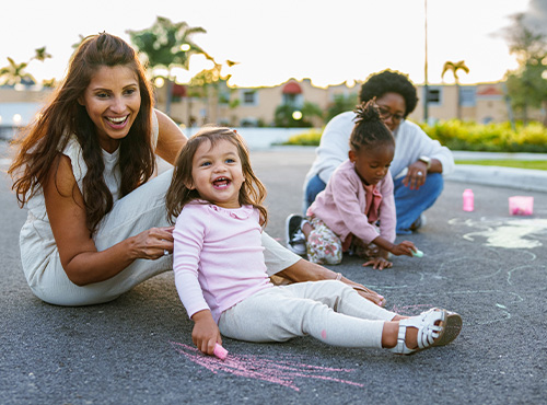 - Encourage creative play outdoors with bubbles and sidewalk chalk.