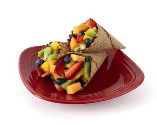 Fill waffle cones with assorted fruit. For extra flair, add whipped topping and a few mini chocolate chips or a dash of sprinkles.