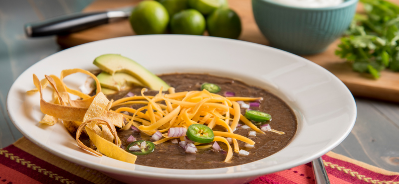 ¡Nada sabe mejor en un día frío que una sopa cocida a fuego lento! Cuece esta sopa de frijoles negros en la estufa o en una olla de cocción lenta y disfruta de un delicioso platillo sin hacer mucho esfuerzo. Es una muy buena opción vegetariana, está repleta de proteína y tiene un sabor delicioso.